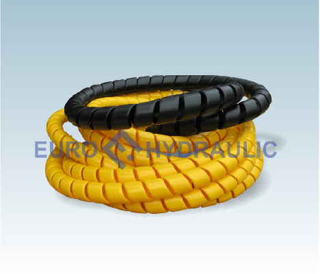 Защитная спираль предохраняет рукава высокого давления от изнашивания и разрывов; с их помощью рукава можно легко собирать в пучок. Морозостойкость и жаростойкость (от -50°С до + 80°С), наряду с устойчивостью к растворителям, делают спиральную защиту способной предохранять гидравлические и пневматические рукава, а также электрические кабели на любой лесной технике. Так же защитные спирали ярко-желтого цвета улучшают видимость шлангов и рукавов, что может предотвратить многие опасные ситуации. Такую спираль легко установить как до, так и после монтажа рукавов высокого давления. Материал спирали: твердый износостойкий полиэтилен. Для чего нужна термопластиковая абразивостойкая защитная спираль? Защитная спиральная оплетка предотвращает повреждения посредством ударов и трения РВД (рукавов высокого давления) пневматических рукавов, других трубопроводов, различных кабельных систем.